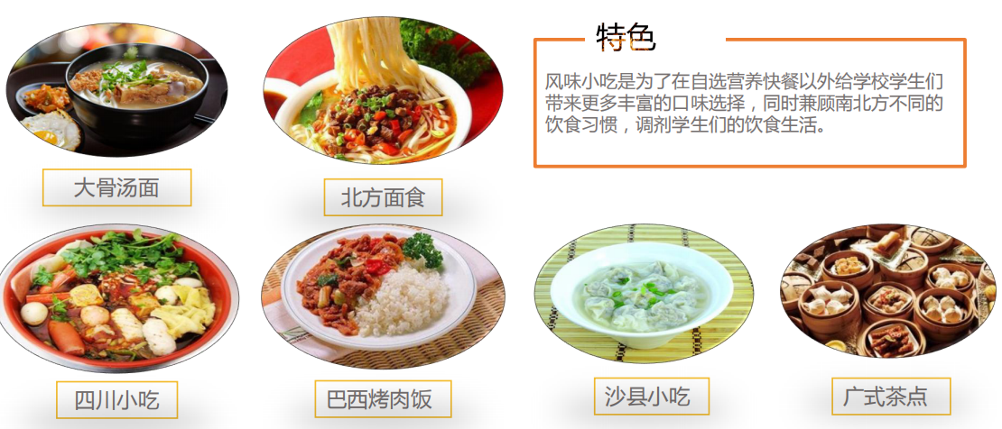 | 因地處閩南泉州市,所以首選閩南風(fēng)味小吃,擬設(shè)“舌尖上的泉州”小檔口,小吃注重口味、營(yíng)養(yǎng)、多樣,一般喜酸甜不喜辛辣,喜清淡不喜油膩。 |
